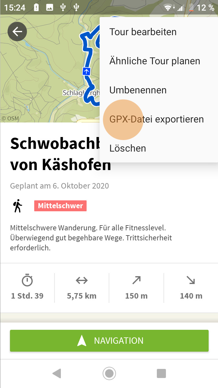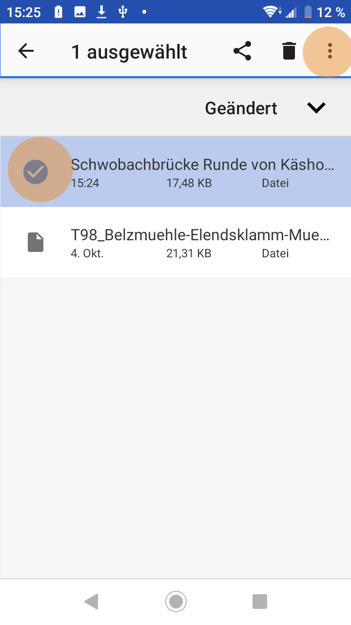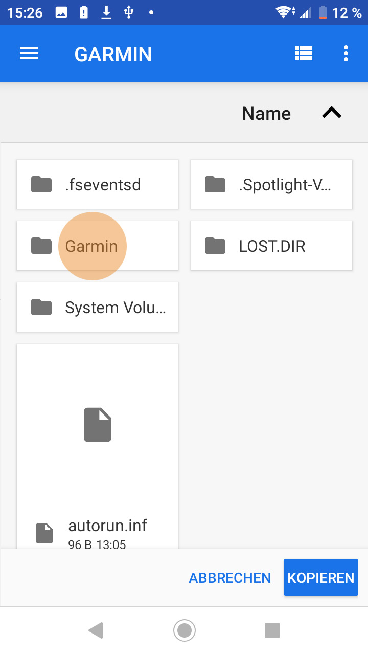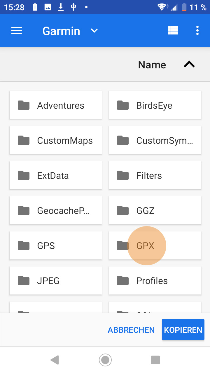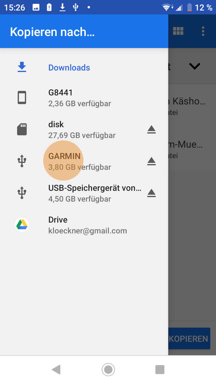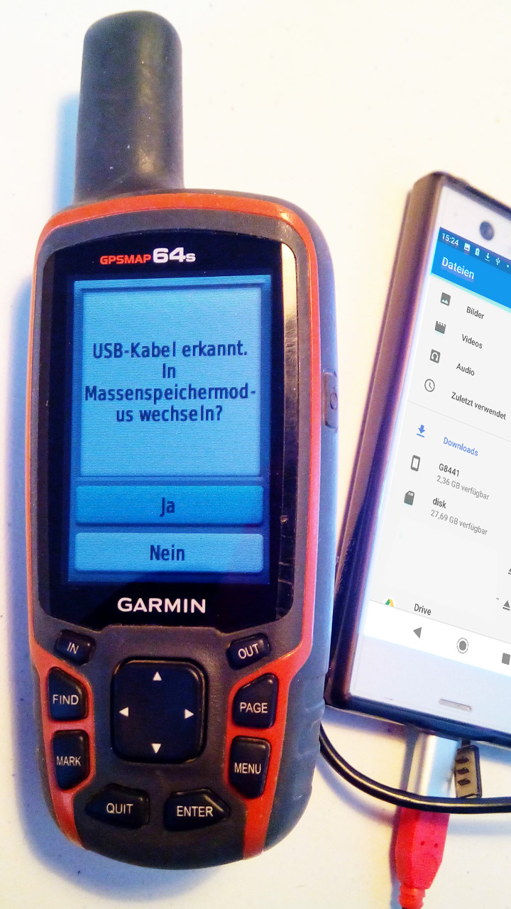 GPX-Datenübertragung Komoot > Garmin per USB-OTG-Kabel