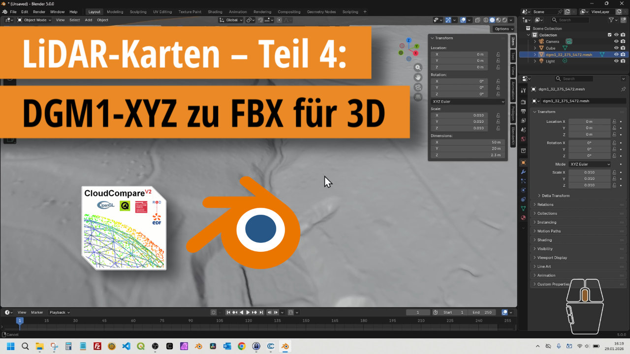 LiDAR-Karten – Teil 4: DGM1-XYZ zu FBX für 3D